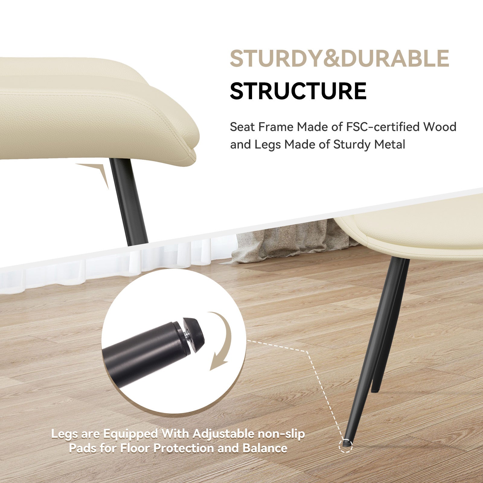 Seat Frame Made of FSC-certified Woodand Legs Made of Sturdy Metal