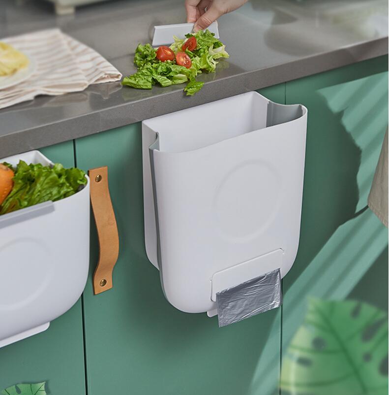 Kitchen Folding Wall Mounted Trash Can Household Cabinet Door Hanging Car Storage