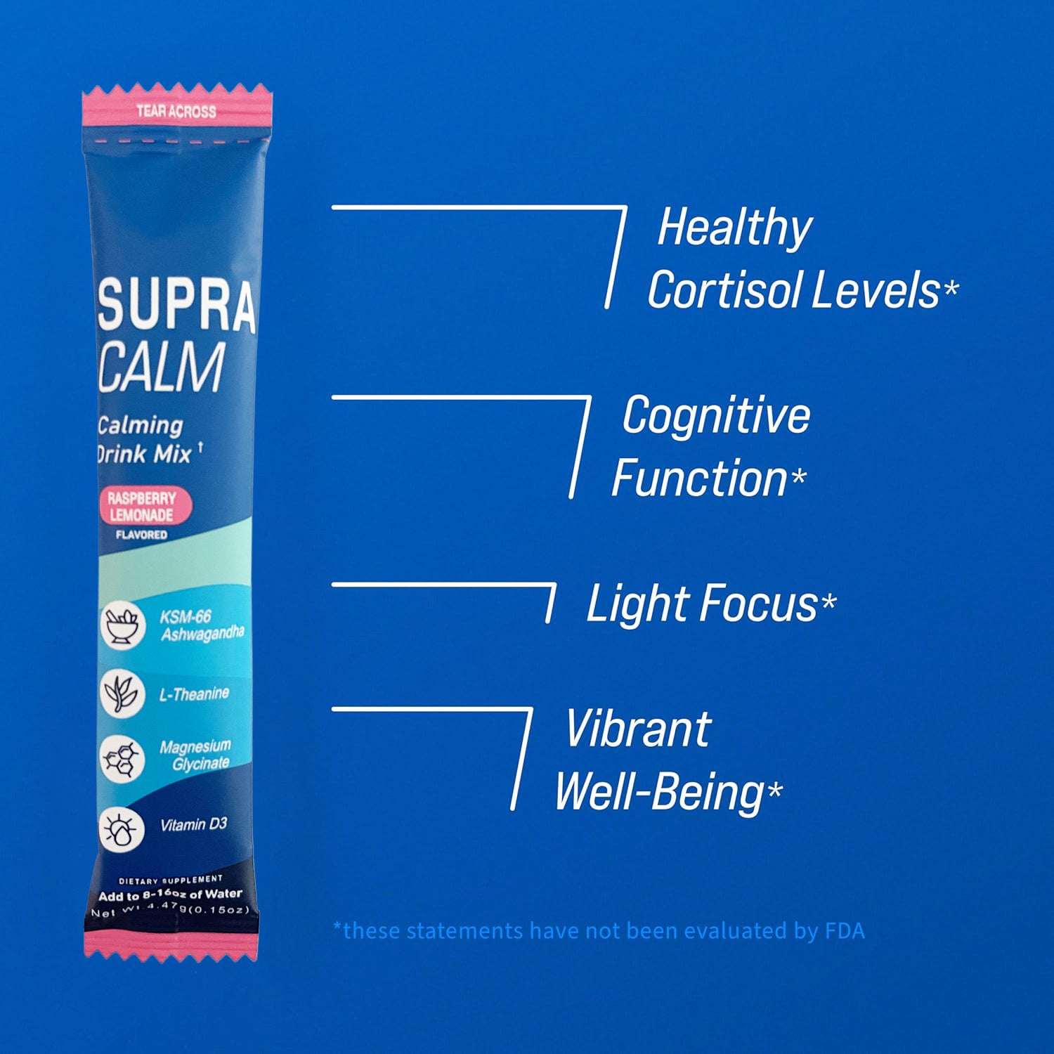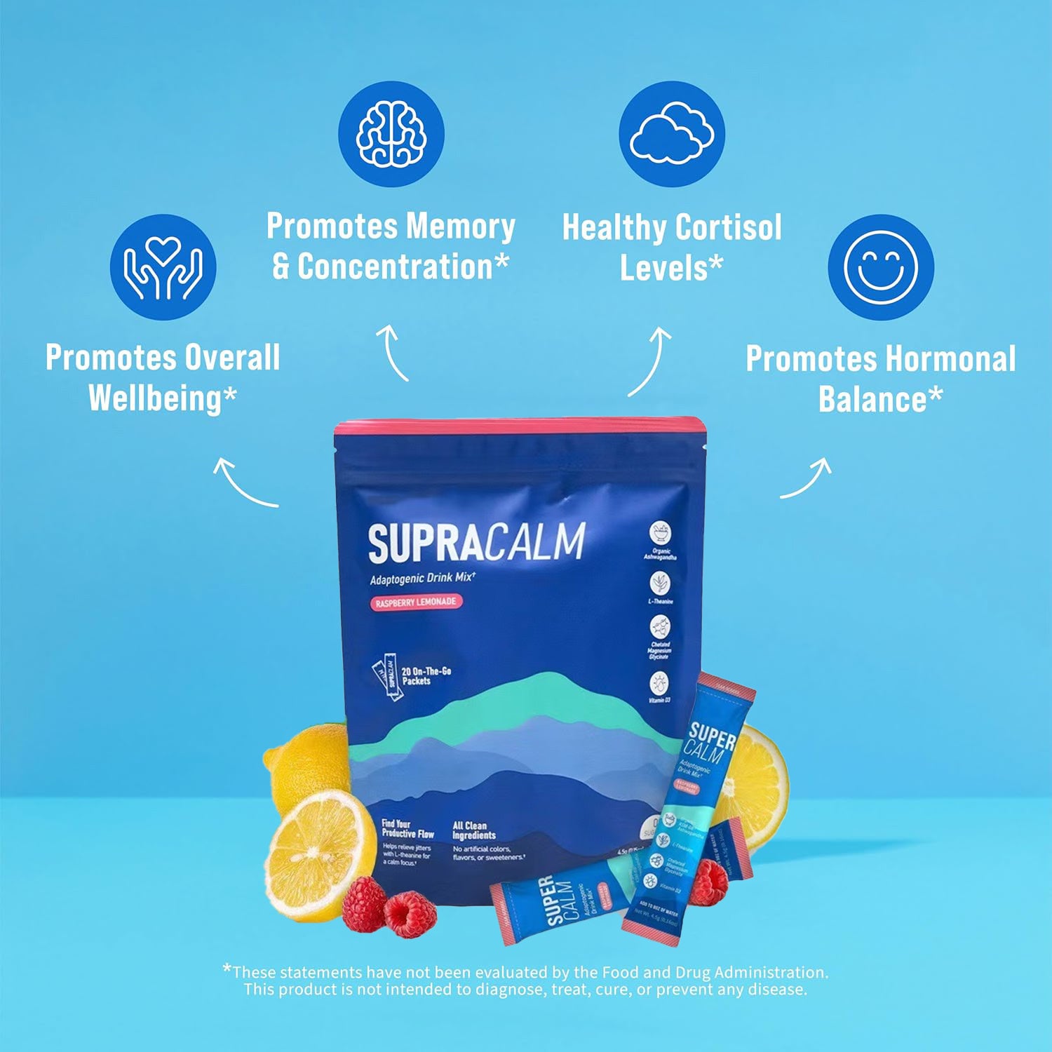 Powdered Drink Mix, Raspberry Lemonade, L Theanine, Ksm-66 Ashwagandha, Magnesium Glycinate, Vitamin D 3, Supplements for Relaxation & Focus, No Sugar, Non GMO, On The Go, 20 Ct