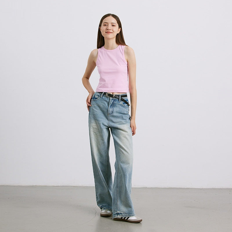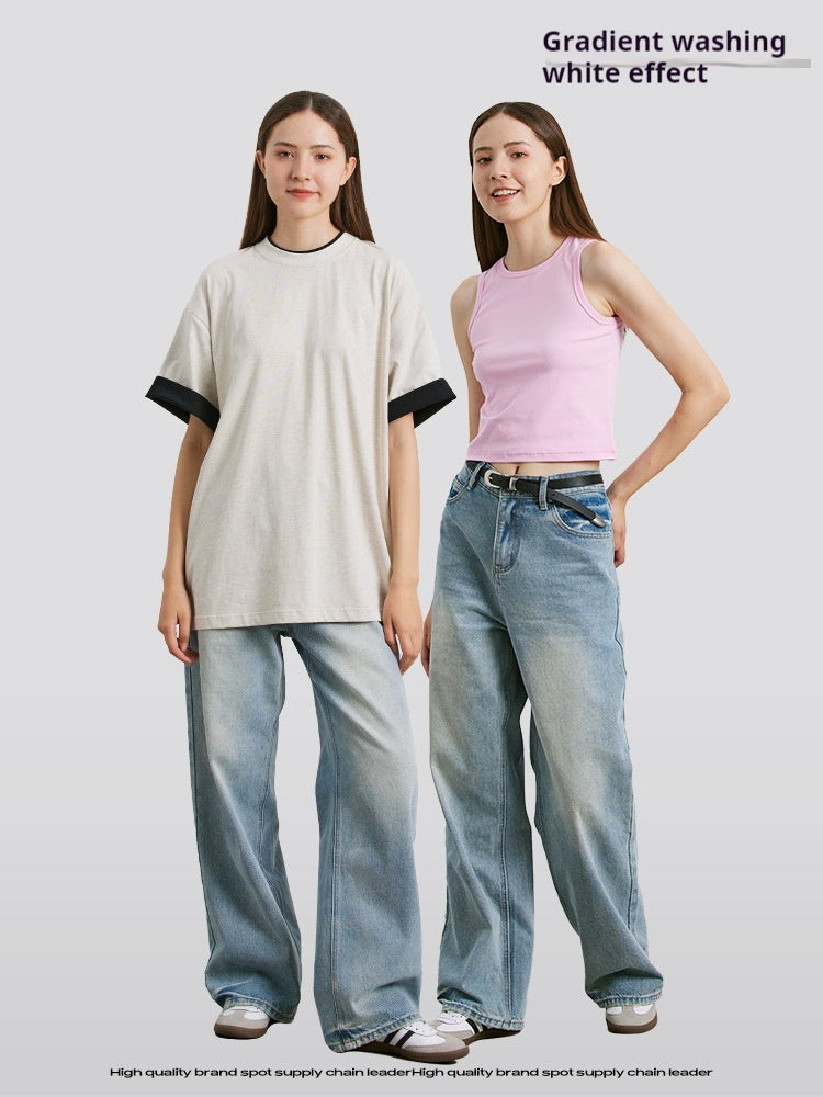 Pure Cotton Washed Bright White Distressed Straight Jeans