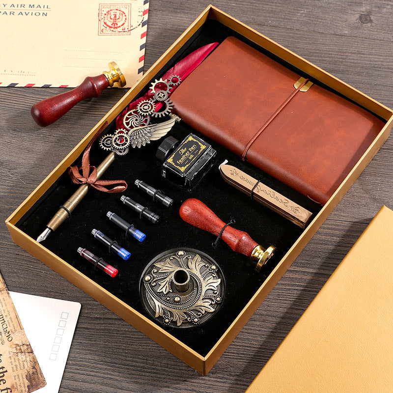 9 styles: wine red mechanical feather pen + travel book 4-piece set