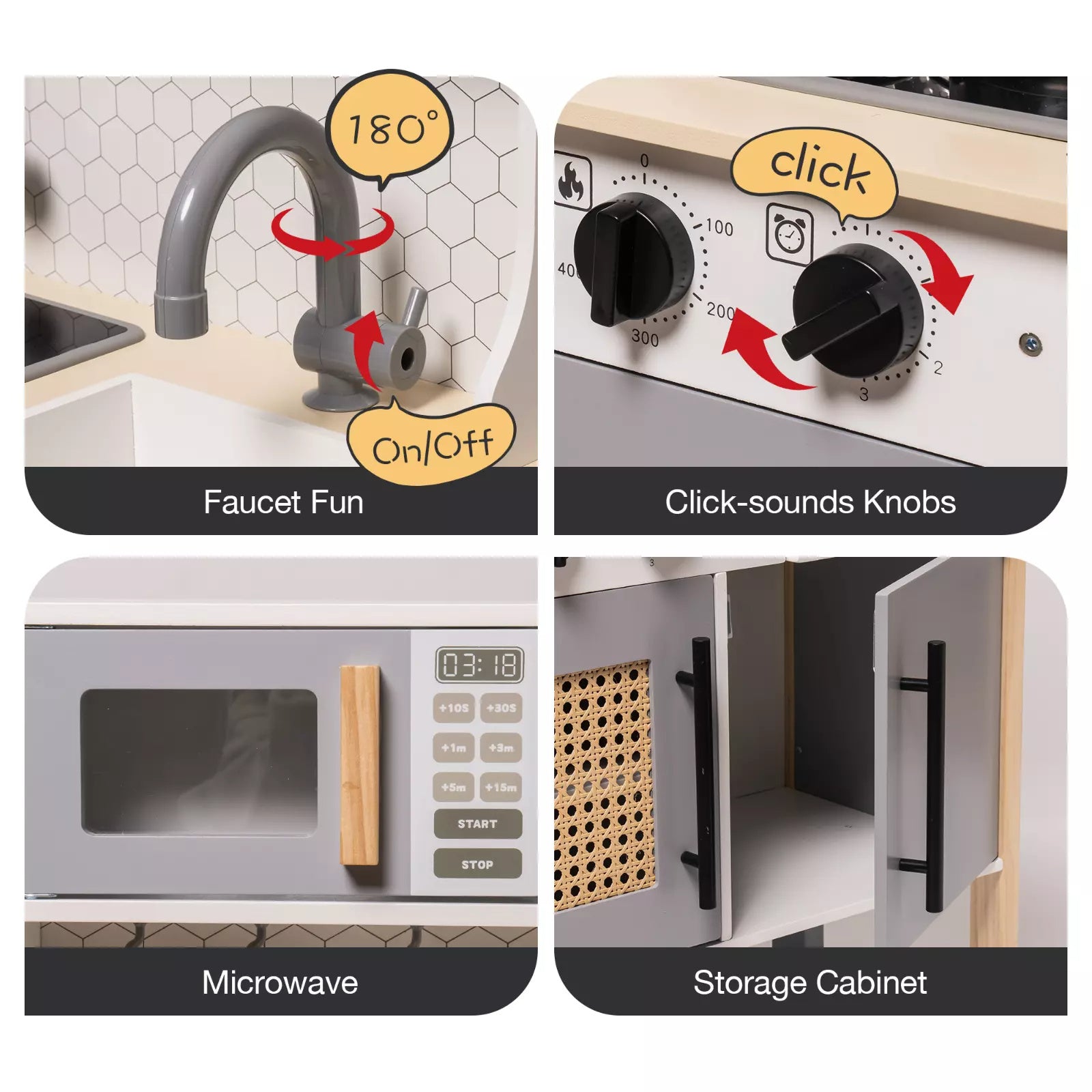ROBOTIME DIY Pretend Play Kitchen Cooking Toy Set Gift For Boys And Girls Gray